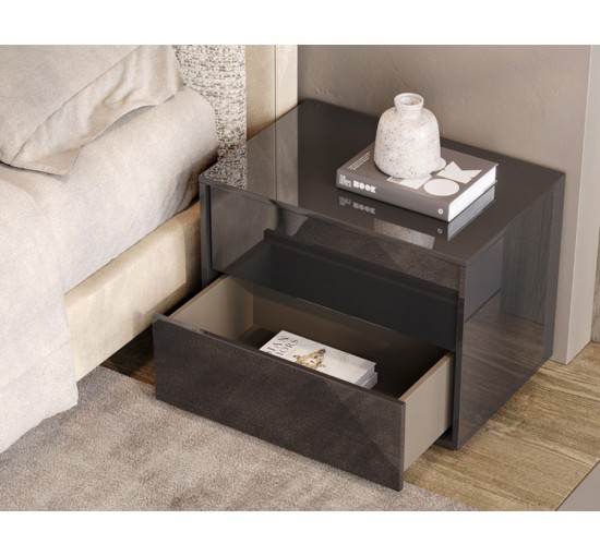 The bed with suspended base stands out for its clean lines and light look, creating a feeling of spaciousness and modernity.