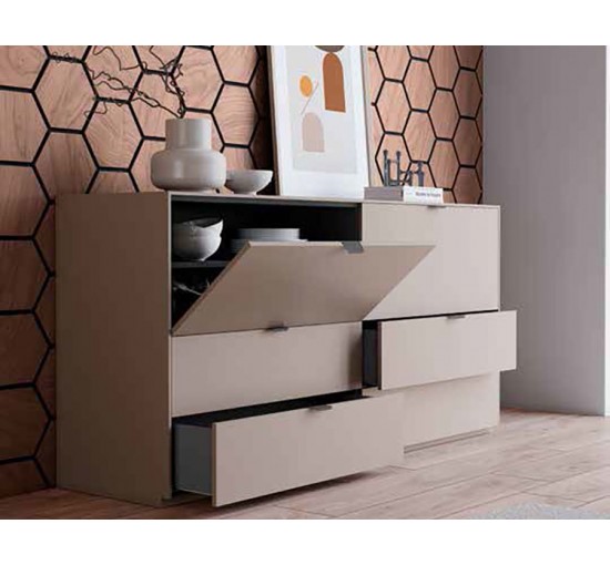 This dining room offers a perfect combination of functionality and style. The large, elegant dining table provides a comfortable space for meals with family or friends. The sideboard, with its sophisticated design, offers ample storage space, allowing you to organize crockery, cutlery and other essential utensils, while at the same time serving as a decorative element for the room. Together, the table and sideboard create a welcoming environment, ideal for socializing and memorable meals.