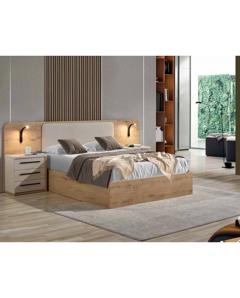 Transform your rest with this elegant double bedroom set. It includes a comfortable bed, two bedside tables and a spacious chest of drawers, combining functionality with a modern and welcoming design. Ideal for creating a harmonious, practical and stylish environment.