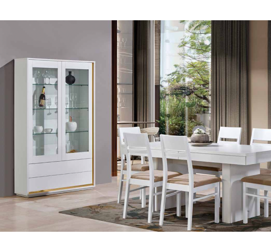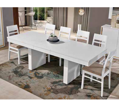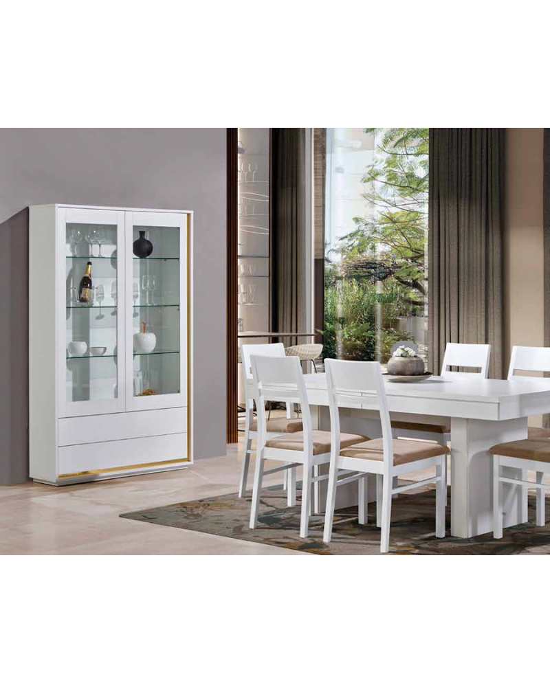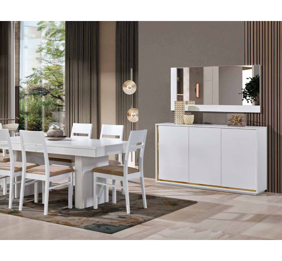 This dining room has been designed to provide an elegant, welcoming and functional environment, ideal for socializing and celebrating. The spacious dining table invites comfortable meals with family and friends, while the sideboard offers practical support for serving or organizing crockery and utensils, keeping the space tidy at all times. The bar cabinet adds a touch of sophistication and practicality, perfect for storing drinks and accessories, making every gathering even more special.