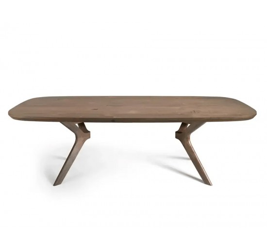 An imposing fixed dining table with a solid ash wood top and sturdy wooden base, available in finishes such as oak, walnut, smoke, or fumé, as well as lacquered options in neutral tones. Available in various sizes, it adapts to different spaces, combining mobility and style without losing the natural elegance of contemporary handmade furniture.
