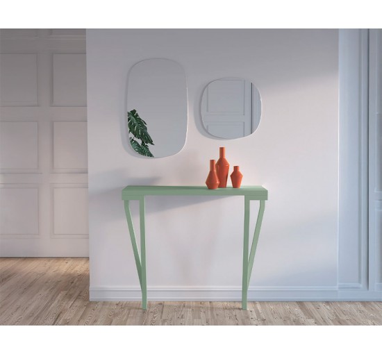 The console table from the Klimt collection combines contemporary and balanced design with practical functionality, offering a light and sophisticated look ideal for entryways, hallways, or living rooms. Designed with an asymmetrical structure and practical storage space with a drawer, it adapts to multiple decorating styles. A highlight is its customizability through finishes in various colors—such as sand, white, mustard, or green—allowing it to harmonize with the environment with elegance and personality without compromising its minimalist aesthetic.