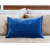 Ce coussin décoratif, mesurant 40x60cm, a un design contemporain et texturé, idéal pour ajouter une touche d'élégance et de confort à n'importe quel espace. Le corps principal du coussin est fabriqué à partir d'un tissu beige doux, offrant une sensation luxueuse et agréable au toucher. La bande centrale, en tissu au motif abstrait évoquant des vagues, combine des nuances de bleu profond, de bleu clair, de blanc et de gris, créant un contraste visuel intéressant et dynamique.