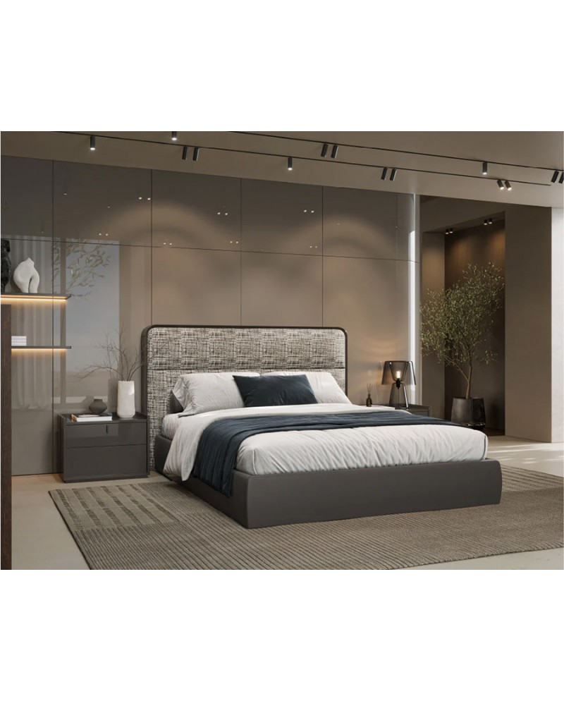 Le lit a un design sophistiqué, avec des lignes douces qui combinent l'esthétique et l'ergonomie, permettant l'utilisation de différents tissus et cuirs de la collection et s'intégrant discrètement dans n'importe quelle chambre à coucher.