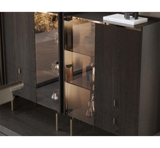 Le buffet se distingue par ses lignes minimalistes et son riche bois de noyer, complété par des détails en finition époxy qui lui confèrent une touche de modernité et de raffinement.