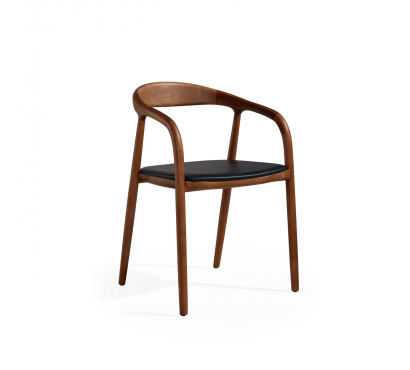 La Nordic Chair allie le naturel du noyer au raffinement du cuir noir, créant un design minimaliste et sophistiqué pour des environnements élégants.