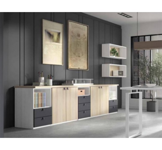 La structure offre des rangements verticaux pour les livres, les documents ou les objets décoratifs, tandis que l'espace de travail est pratique et confortable, créant un environnement organisé et efficace pour étudier ou travailler.