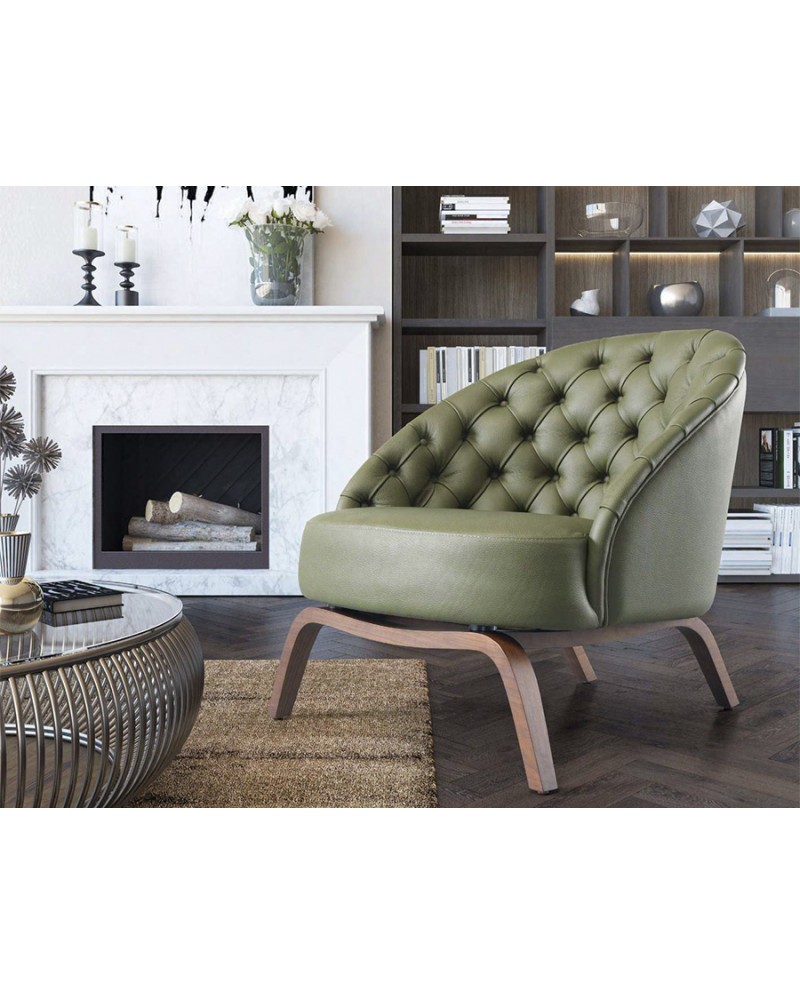 Le fauteuil Milano allie confort et élégance classique, avec un dossier capitonné et des pieds en bois courbés qui enrichissent le salon d'une touche intemporelle.