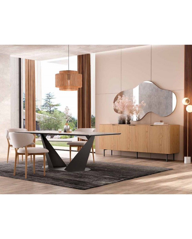 Transformez vos repas en moments privilégiés grâce à cette salle à manger sophistiquée et accueillante. La table de salle à manger, au design contemporain, offre l'espace idéal pour les réunions de famille ou entre amis. Le buffet complète la pièce avec fonctionnalité, parfait pour ranger la vaisselle, les couverts ou d'autres objets. Le miroir, placé stratégiquement, élargit visuellement l'espace et reflète la lumière, créant ainsi une atmosphère plus lumineuse, plus élégante et plus engageante. Cette combinaison de pièces permet de créer une salle à manger harmonieuse, pratique et élégante.