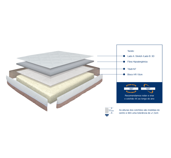 Avec une surface viscoélastique, ce matelas devient l'adaptation parfaite au corps et a une excellente répartition de la pression. Son tissu 3D offre une excellente circulation de l'air, il circule donc à l'intérieur du matelas, améliorant considérablement la ventilation. Il a également dans sa composition un tissu et un rembourrage hypoallergénique qui prévient et prévient les réactions allergiques.