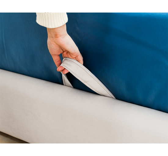 Uma cama de casal estofada, que confere um toque especial ao seu espaço.