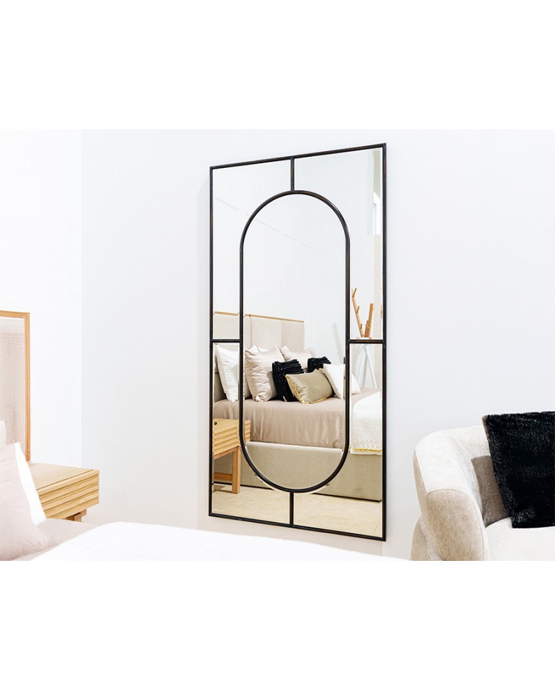 Espelho de parede com design moderno e traço sofisticado, ideal para ampliar visualmente o espaço e acrescentar luminosidade à decoração. Com linhas elegantes e presença marcante, é perfeito para ambientes como halls, salas, quartos ou corredores, funcionando tanto como peça funcional quanto como elemento decorativo de destaque.