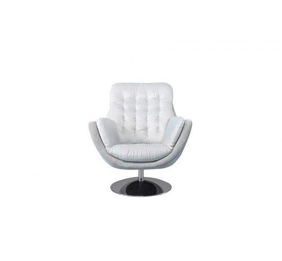 O cadeirão Opera destaca-se pelo seu design sofisticado, com contraste de cores e base central metálica que acrescentam elegância e modernidade ao ambiente.