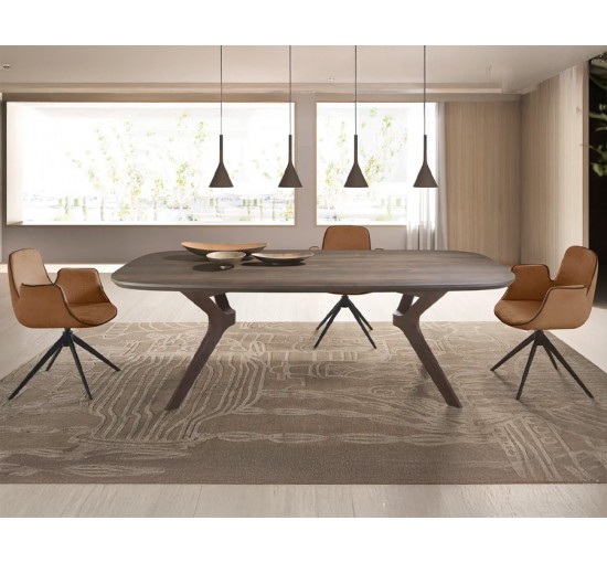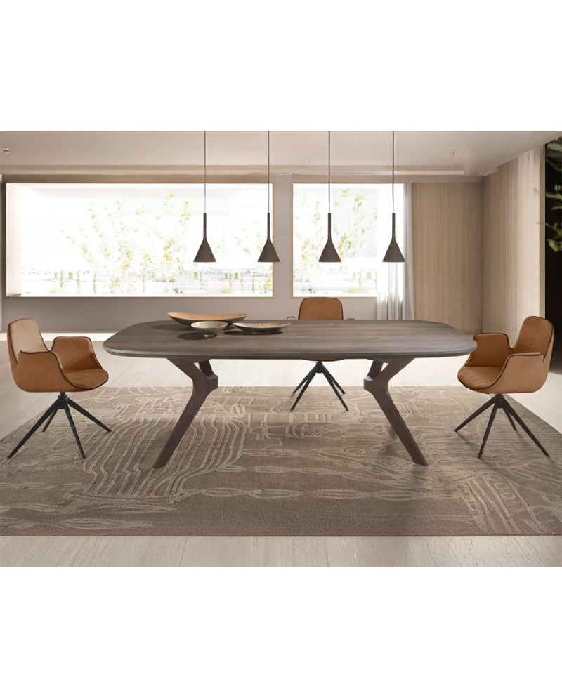 Mesa fixa sofisticada em madeira maciça de freixo, personalizável e ideal para espaços elegantes.
